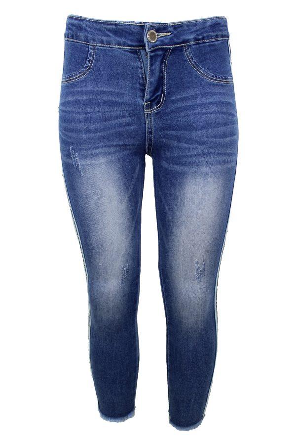 Eine schöne hellblaue stretch Jeans mit Taschen. Die Hose kann mit Elastikeinsätzen auf der Innenseite eingestellt werden.