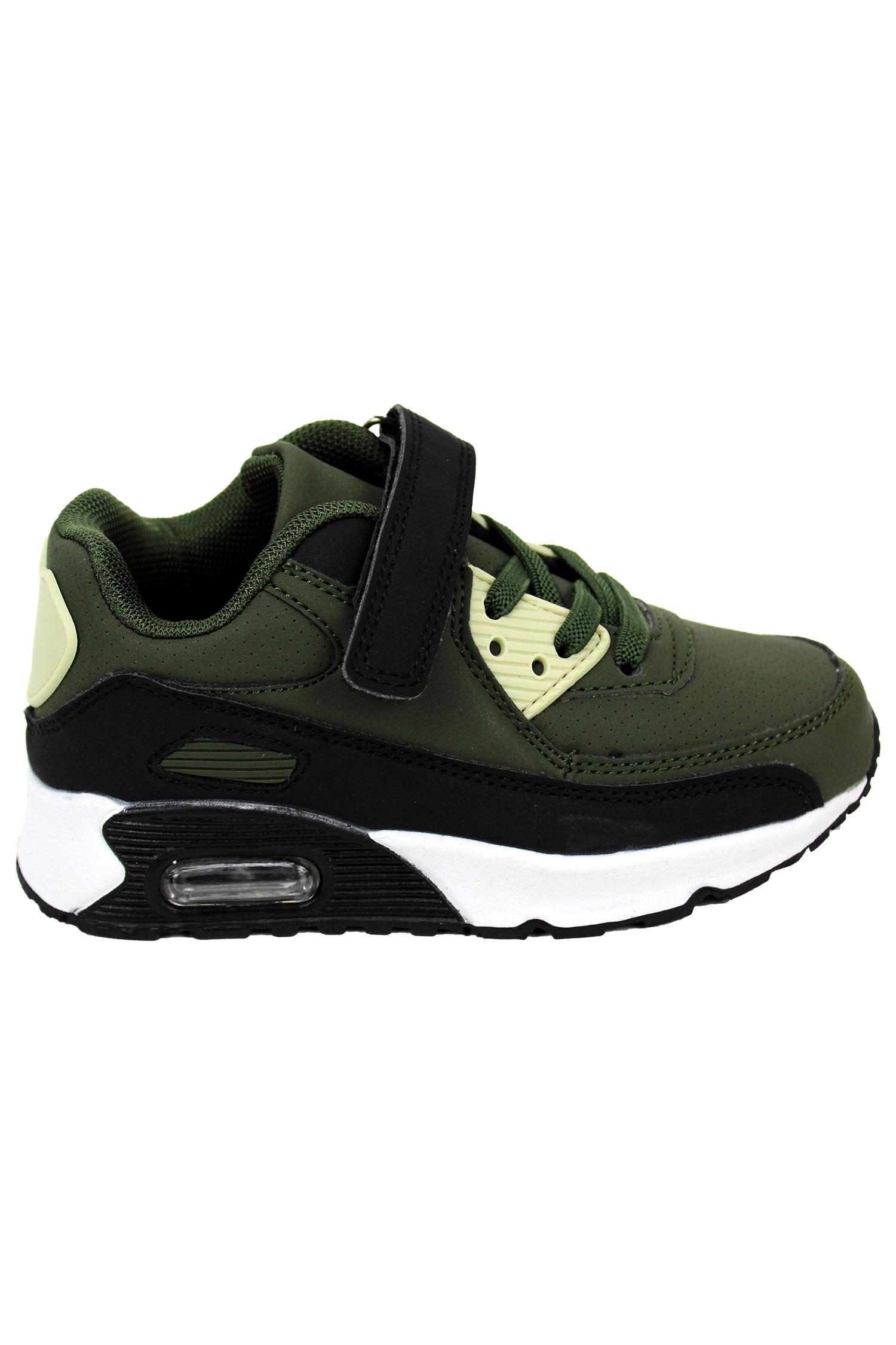 Coole dunkelgrüne Sneaker mit Schnürsenkeln in den Größen 26 bis 35. Die Größen 26-29 haben Schnürsenkel und Klettverschluss